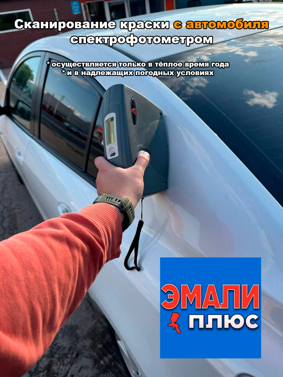 Данная краска заправляется в краскопульт. Автомобильная краска изготавливается специально для Вас по заводскому коду Вашего автомобиля. При этом используется специальный аппарат спектрофатометр, который позволяет наиболее точно выбрать цвет Вашего автомобиля и производит доколеровку с учётом выцветания краски.